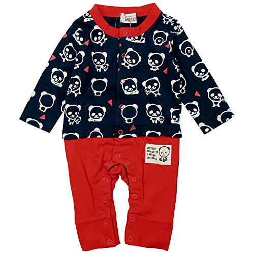 【秋冬春対応】 GARACH(ギャラッチ)裏毛パンダ総柄ロンパース 80cm /Nv NO.AH-1634302