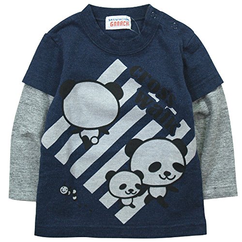 《初夏春秋対応》 ☆GARACH(ギャラッチ) 天竺横断歩道パンダ長袖Tシャツ 100cm /NV NO.AH-1711401