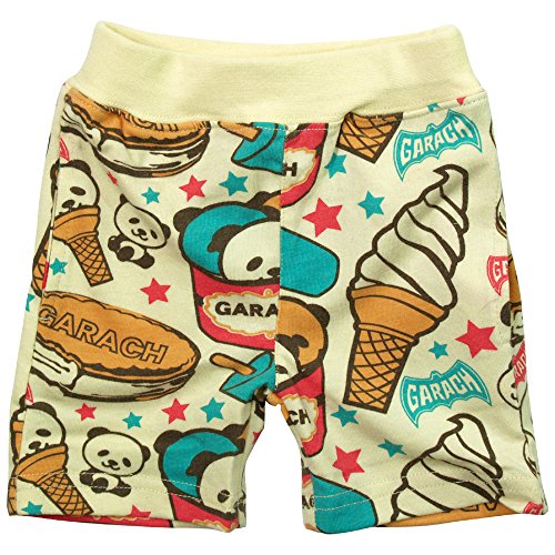 《初夏盛夏対応》 GARACH(ギャラッチ)40/2天竺ソフトクリームパンダ総柄ハーフパンツ 90cm/Ye NO.AH-1822104
