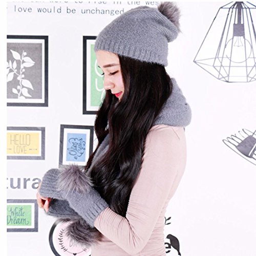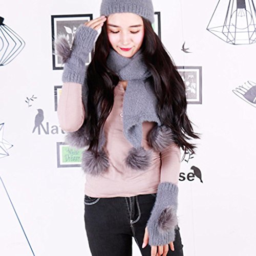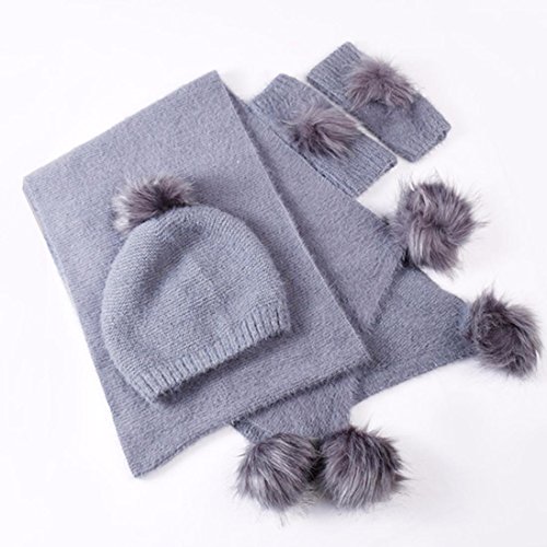 gbsell 3個入りレディース冬暖かいニットウールふわふわ帽子+スカーフ+手袋セット XXL グレー