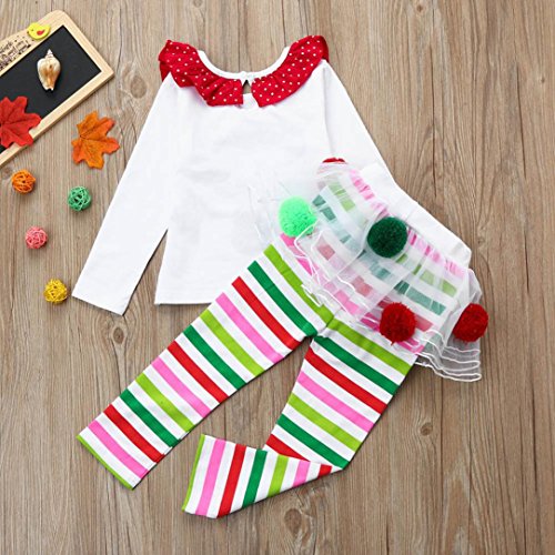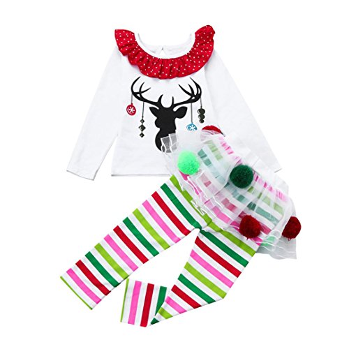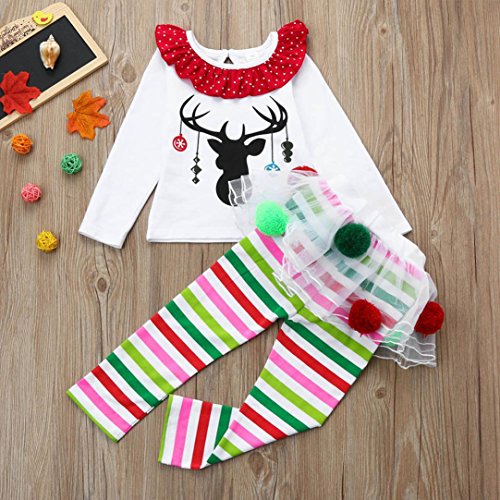 gbsellキッズ幼児用ベビーガールズクリスマス服装鹿Tシャツ+チュチュボールドレスストライプパンツセット