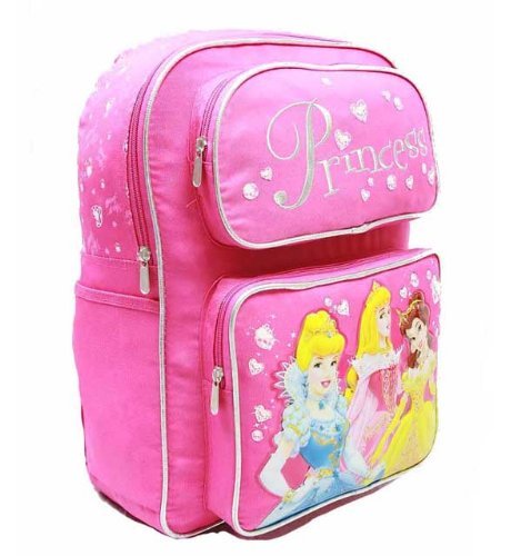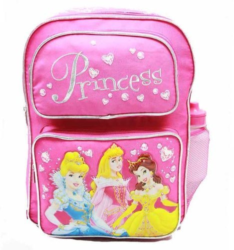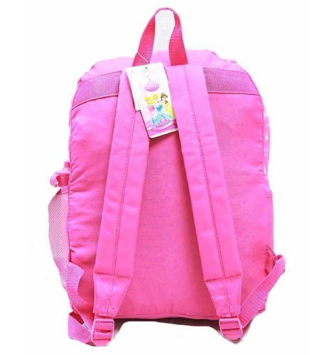 Adjustable Straps 2 Zippered Compartments in Front Mesh Pocket on one side Fabric Pocket on other side Lincensed Product Disney Princess On Front Pocket:(L to R) CinderellaSleeping BeautyBelle ( Beauty and the Beast )