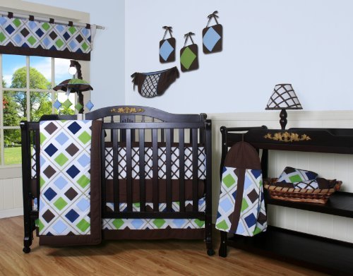 GEENNY 13 Piece Crib Bedding Set, Blue/Brown Diamond