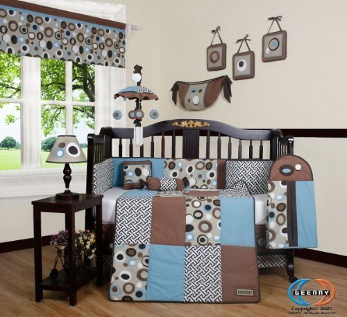 GEENNY Boutique 13 Piece Crib Bedding Set, Blue/Brown Scribble