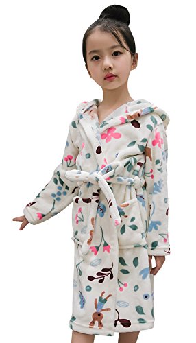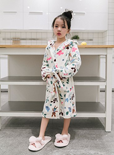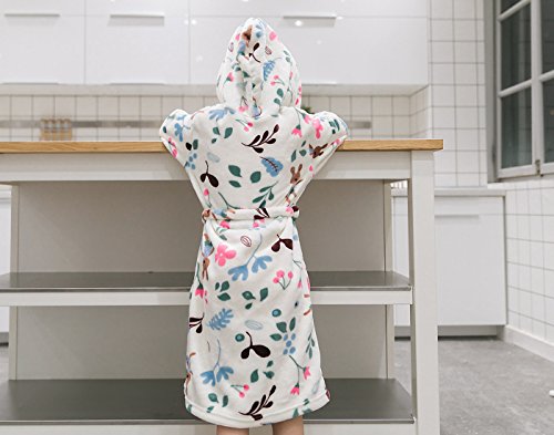 バスローブ 子供 キッズ 冬 パジャマ フード付き 柔らかい 暖かい 花柄 激カワ フランネル タオル お風呂上げ プール用 超可愛い 静電気防止 ピリピリしない 男女兼用 男の子 女の子 可愛いデザイン ホワイト 130