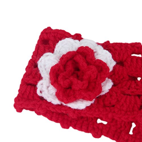 GEMVIE ベビー用ヘアバンド ニット 花飾り 赤ちゃん 出産祝い 誕生日 100日記念 こどもの日 撮影服 アクセサリー ハット 帽子 結婚式 パーティー レッド