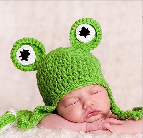 GEMVIE ニット帽子 ベビーハット 赤ちゃん用 帽子 可愛い カエル ニットキャップ 毛糸 手作り 防寒帽子 新生児 幼児 コスチューム 撮影用 出産祝い グリーン