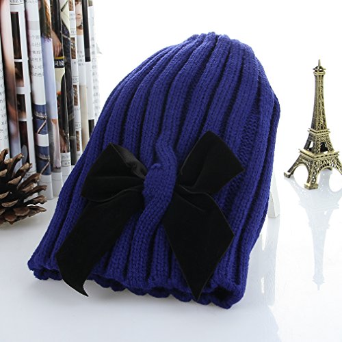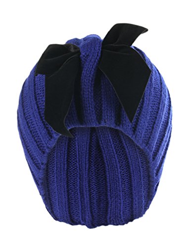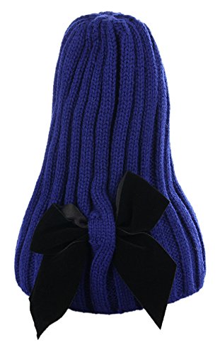 GEMVIE キッズ ニット帽子 とんがり帽子 毛糸編み 子供用 ワッチキャップ 女の子 ガールズ ニットキャップ リボン付き ハット 秋冬 防寒 帽子 ブルー