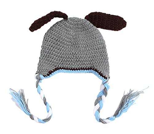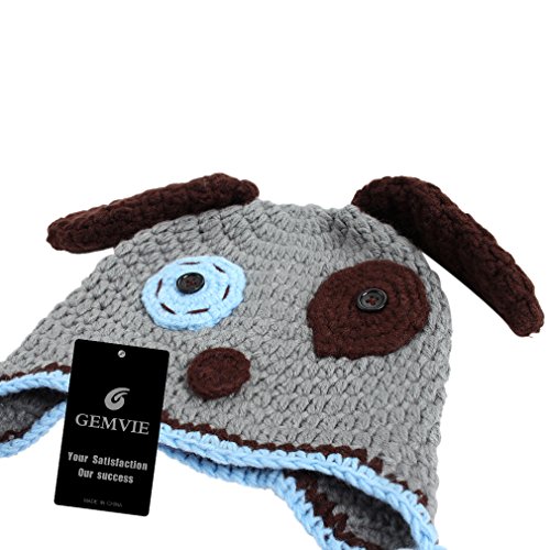 GEMVIE ニット帽子 ベビーハット 赤ちゃん用 帽子 耳あて ワンちゃん キャップ 手作り編み 防寒帽子 新生児 幼児 コスチューム 撮影用 百日祝い グレー