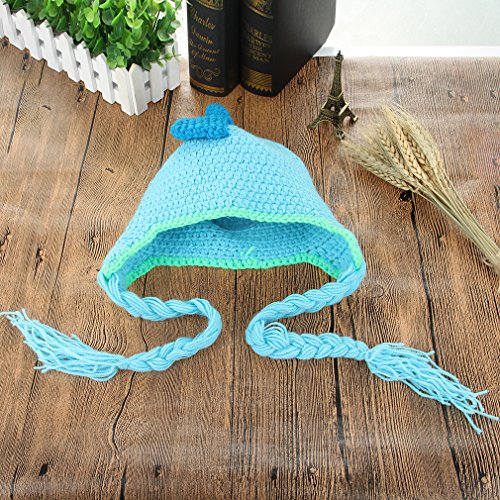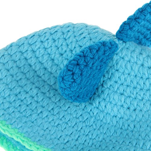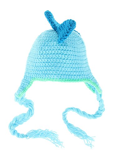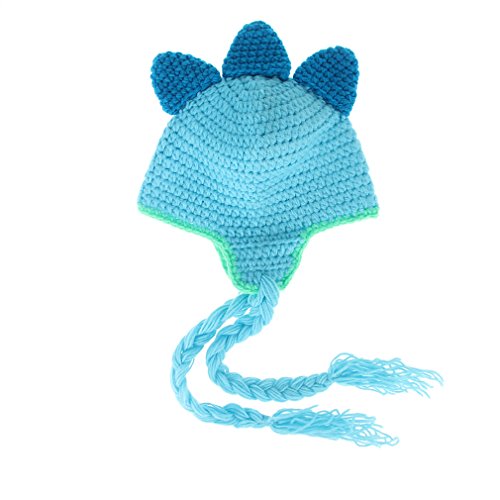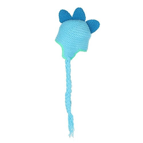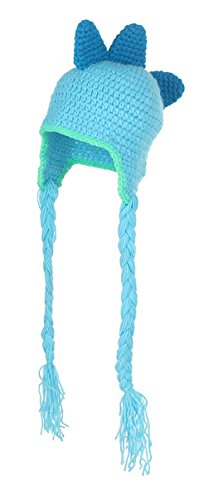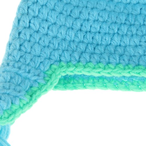 GEMVIE ベビー ニット ハット 可愛い 耳あて ボンボン ニットキャップ 女の子 男の子 赤ちゃん 子供 冬 帽子 動物 恐竜 ひも付き 暖かい ブルー