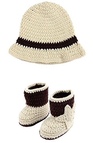 GEMVIE ベビー ニット帽子 ニットシューズ 手作り編み 毛糸 靴 2点セット 赤ちゃん ベビー 新生児 かわいい ハット 記念撮影 出産祝い ギフト ベージュ