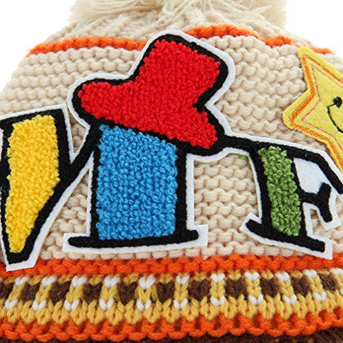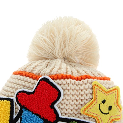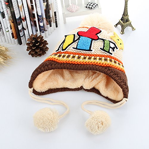 GEMVIE 秋冬 キッズ ニット帽子 女の子 男の子 子供用 帽子 耳あて キャップ ボンボン付き 英字ロゴ 防寒 防風 ニット ハット 毛糸帽子 かわいい ベージュ