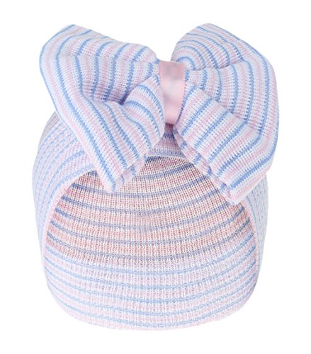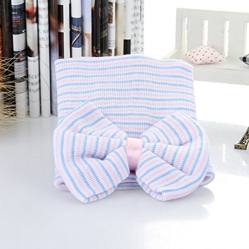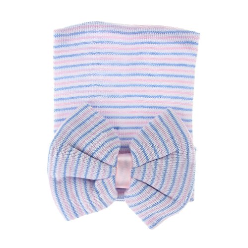 GEMVIE 新生児 ハット コットン キャップ リボン飾り 0-6ヶ月 柔らかい 誕生日 百日祝い ストライプ 赤ちゃん ベビー 保温 きれいめ 撮影 1