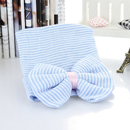 GEMVIE 新生児 ハット コットン キャップ リボン飾り 0-6ヶ月 柔らかい 誕生日 百日祝い ストライプ 赤ちゃん ベビー 保温 きれいめ 撮影 4
