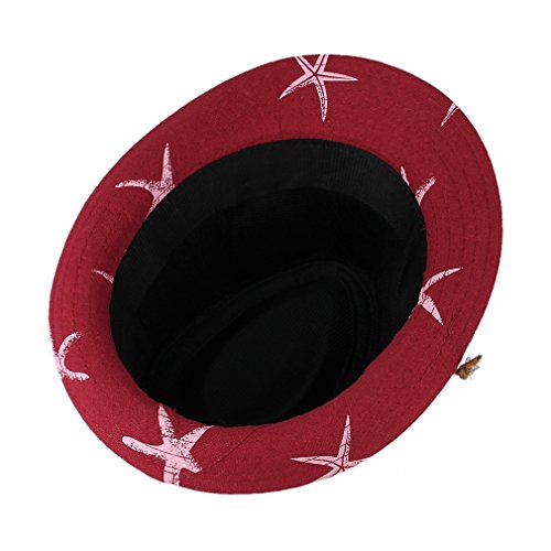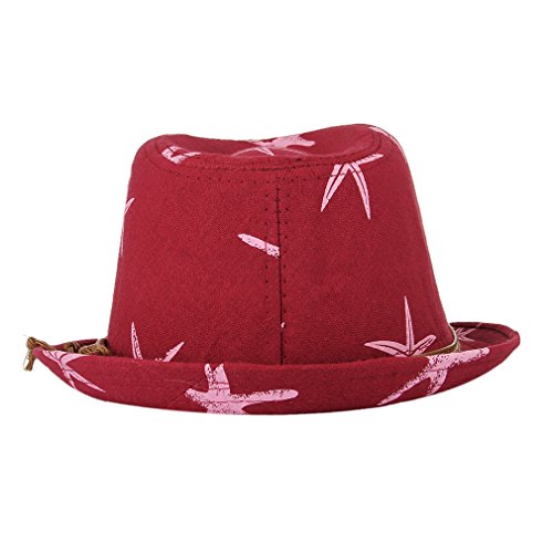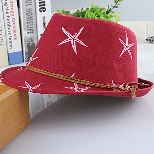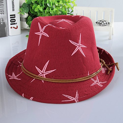 GEMVIE キッズ 中折れ ハット フェルトハット 子供用 帽子 モダンハット ソフトハット ヒトデ プリント 礼帽 女の子 男の子 兼用 秋冬 保温 レッド