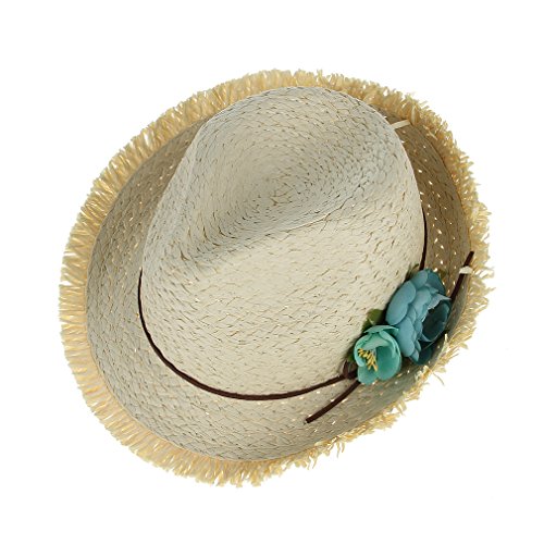 GEMVIE 子供用 無地 麦ワラ帽子 中折れハット 花 キャップ シンプル オシャレ 女の子 折りたたみ アウトドア 日よけ お出かけ ベージュ