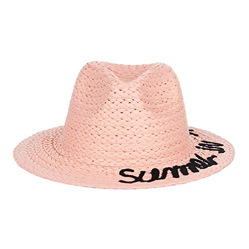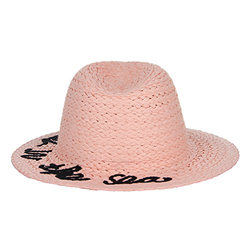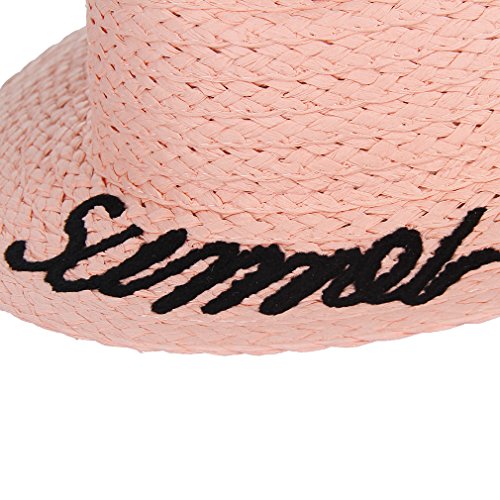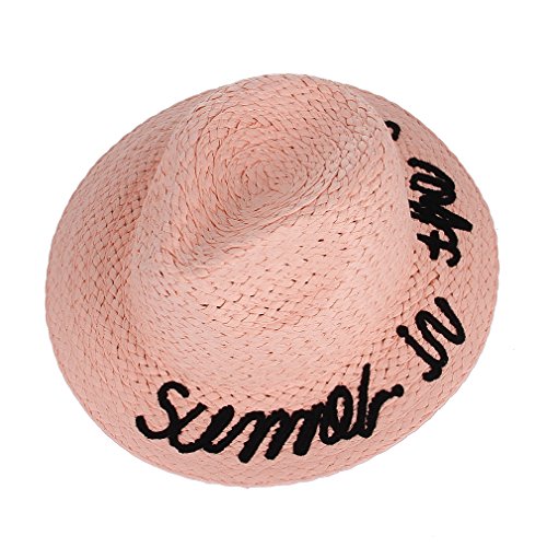 GEMVIE 子供用 無地 麦ワラ帽子 中折れハット キャップ シンプル オシャレ 男女兼用 折りたたみ アウトドア 日よけ お出かけ ジャズ帽子 ピンク1