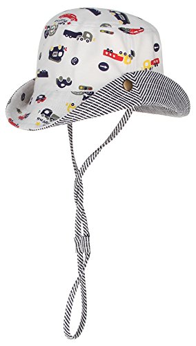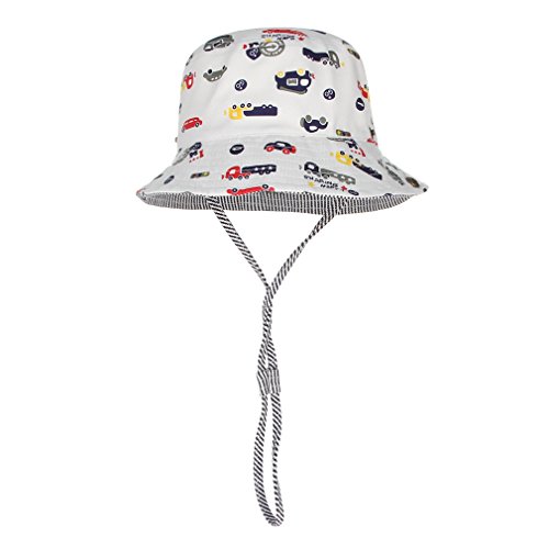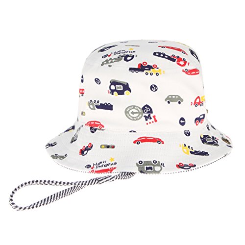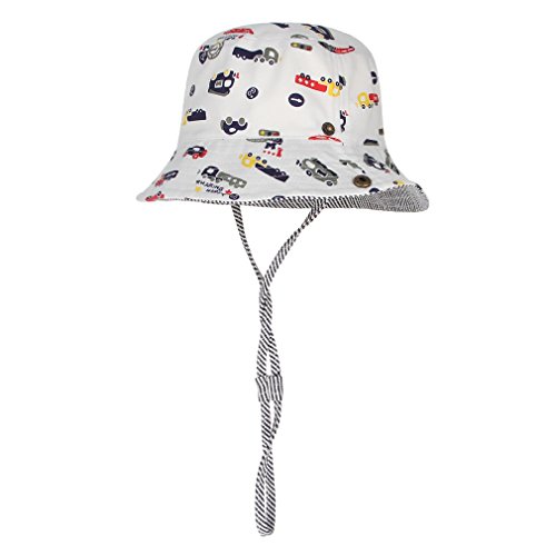 GEMVIE ベビーキャップ 可愛いプリント 日焼け止め UVカット 夏 男の子 女の子 ハット あごひも付き 通園 幼稚園 遠足 キッズ 帽子 S ホワイト