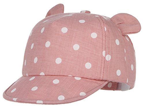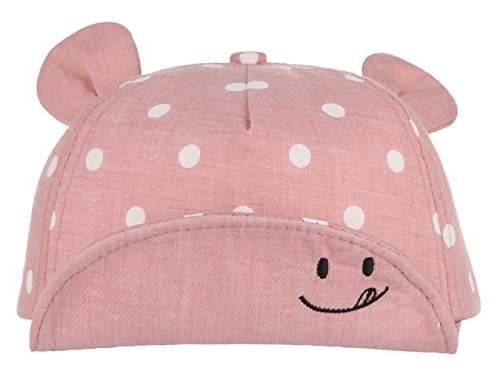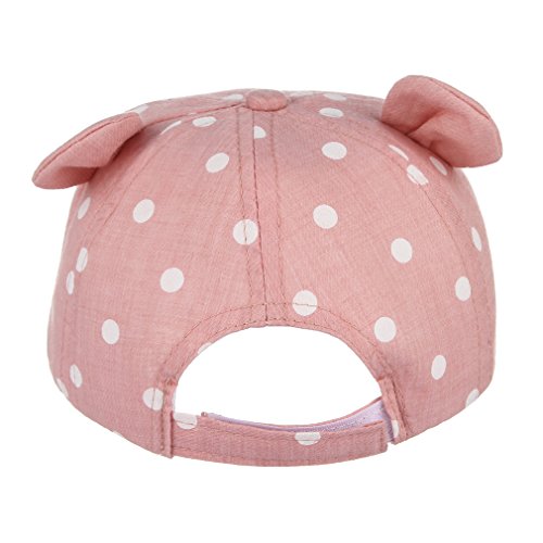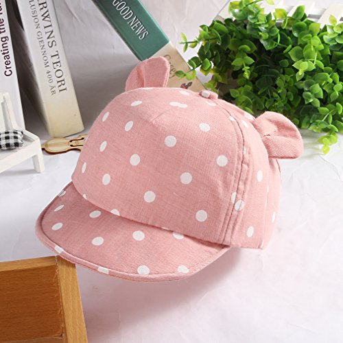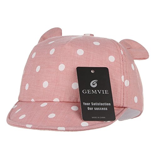 GEMVIE ベビー 帽子 キャップ 可愛い耳付き つば広 紫外線 UVカット 子供用ハット 調節可能 通園 散歩 旅行 ドットプリント 女の子 男の子 ピンク