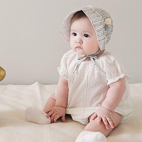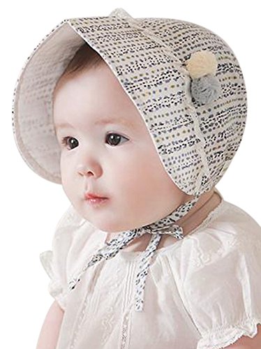 GEMVIE ベビーハット ハット つば広 毛玉飾り 新生児 紫外線 UV対策 お宮参り 出産祝い プレゼント ハット 帽子 ひも付き 可愛い ホワイト