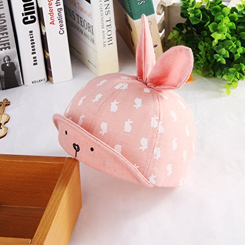 GEMVIE キャップ 赤ちゃん ハット 日焼け止め つば広 ウサギ造形 可愛い 子供帽子 女の子 男の子 男女兼用 幼稚園 お出かけ 調節可能 ピンク