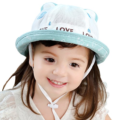 GEMVIE ベビー ハット 女の子 メッシュ 帽子 クマ耳付き 紐 サンバイザーハット 新生児 赤ちゃんキャップ 幼児 日除け帽子 UVカット ホワイト