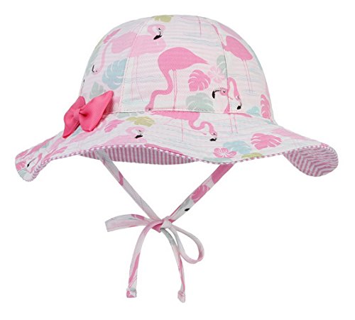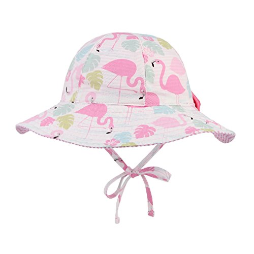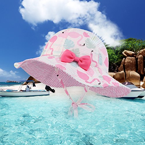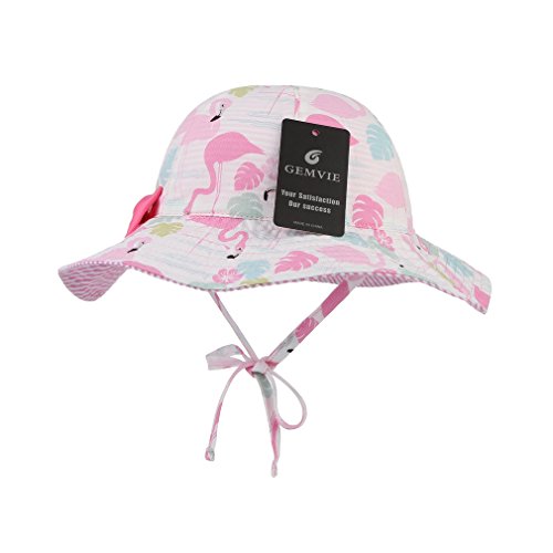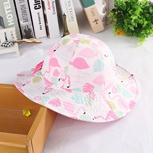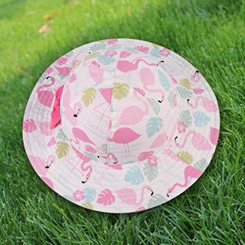 GEMVIE ベビー用ハット フラミンゴプリント つば広 赤ちゃんキャップ 紫外線 UVカット キッズ 帽子 サンバイザー フィッシャーマンハット リボン飾り 女の子 50