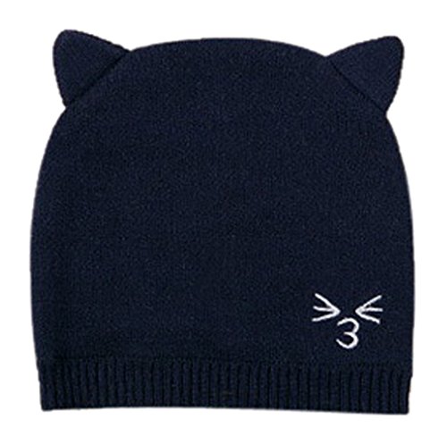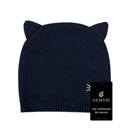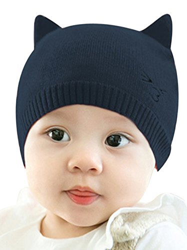 GEMVIE ベビーハット ニットハット ねこ耳 可愛い ビーニー帽 防寒 ねむ用 新生児 キャップ 女の子 男の子 防寒 出産祝い ギフト ネイビー