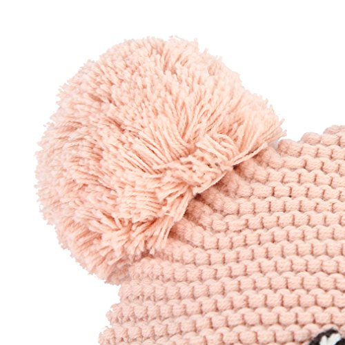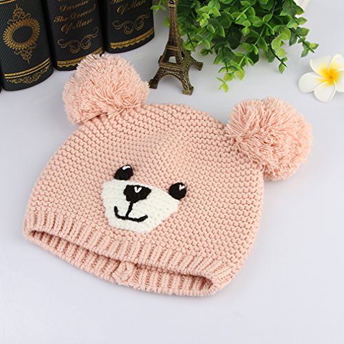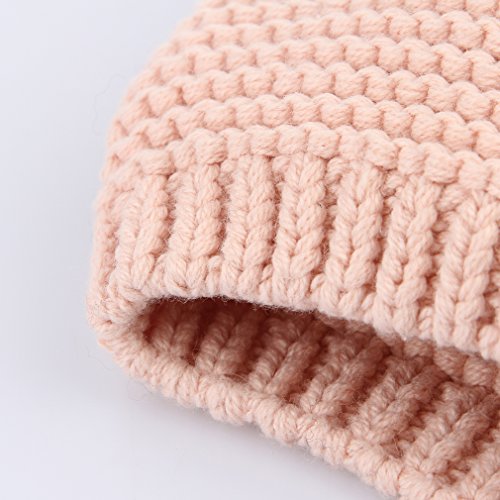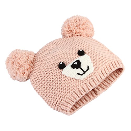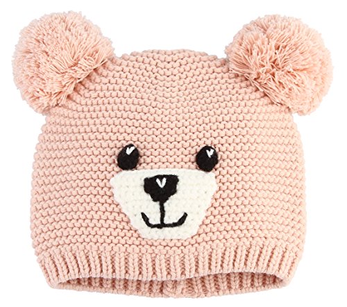 GEMVIE ベビーハット ニットハット クマ造形 耳飾り 赤ちゃん 帽子 キッズ用 男の子 女の子 防寒 可愛い お出かけ 通園 L ピンク