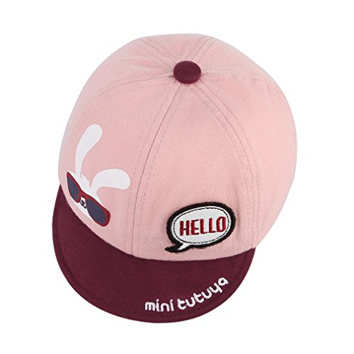 GEMVIE ベビー ハット キャップ ウサギプリント 可愛い 調節可能 女の子 男の子 子供帽子 男女兼用 通園 お出かけ 公園 野球帽 S ピンク