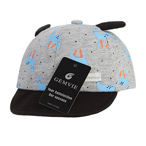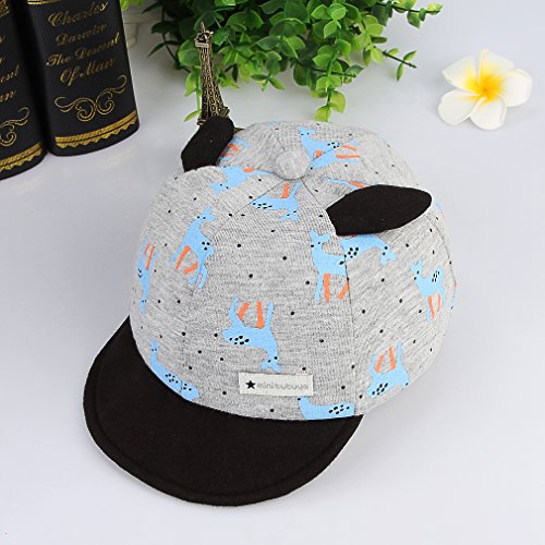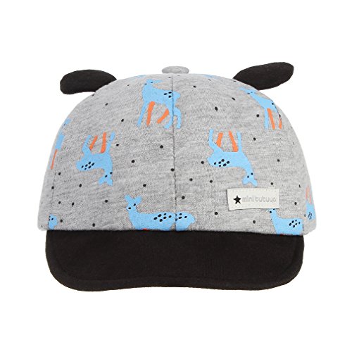 GEMVIE ベビー ハット キャップ 鹿プリント 可愛い 耳付き 調節可能 女の子 男の子 子供帽子 通園 お出かけ 公園 野球帽 S グレー