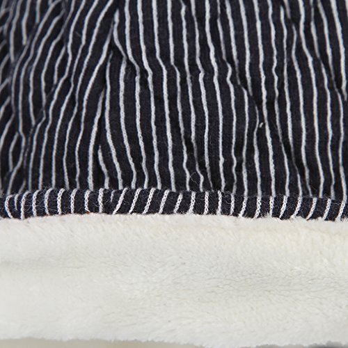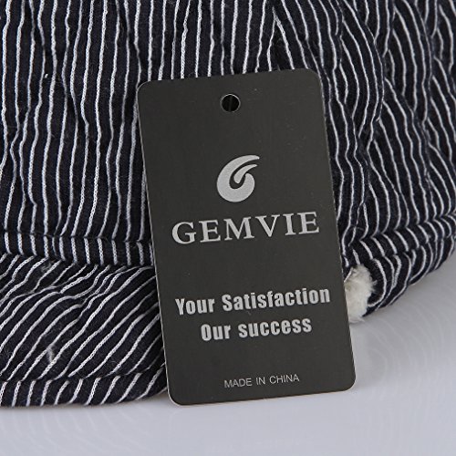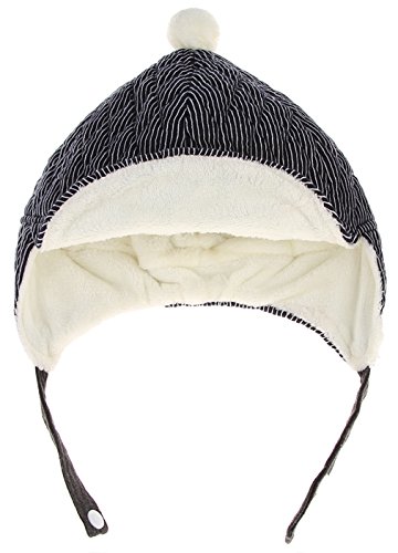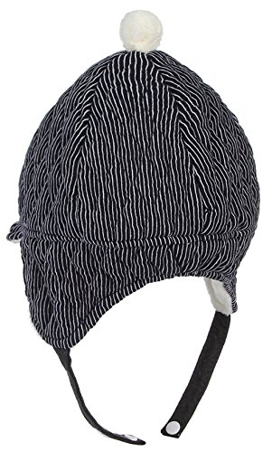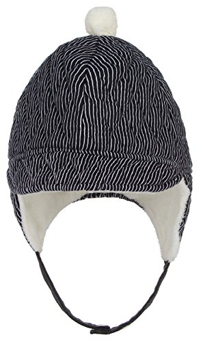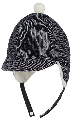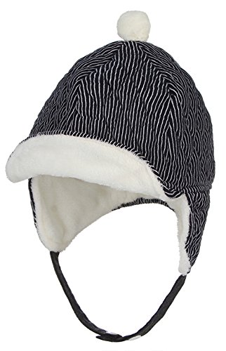GEMVIE 子供ハット キャップ つば付き 帽子 もこもこ ストライプ あったか 耳あて付き 裏起毛 防寒 男の子 女の子 ベビーハット ネイビー