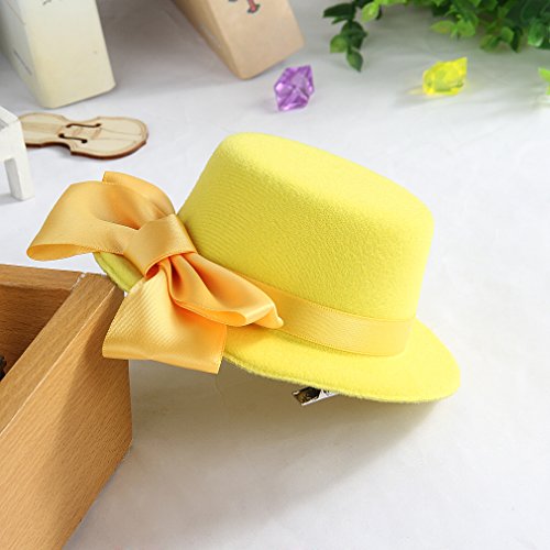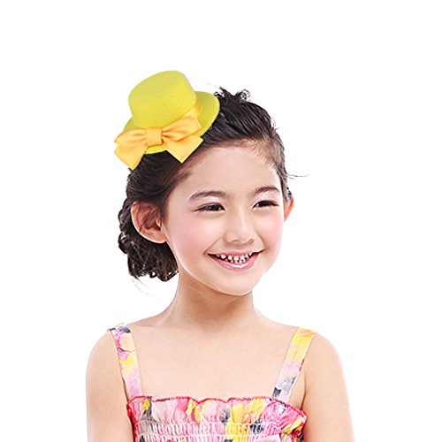 GEMVIE ヘアアクセサリー キッズ 髪飾り 子供 ヘアピン ミニハット ヘッドドレス ガールズ お姫様 髪留め 結婚式 発表会 イエロー