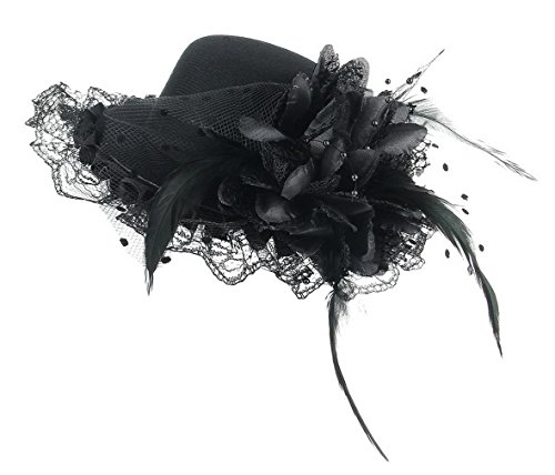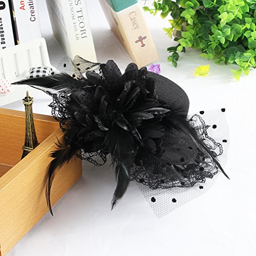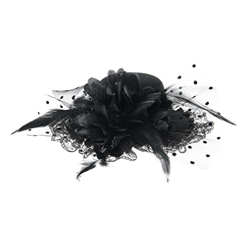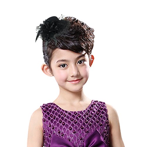 GEMVIE ヘアアクセサリー キッズ 髪飾り チュール お花飾り 子供 ヘアピン ミニハット ヘッドドレス ガールズ 髪留め 結婚式 発表会 ブラック