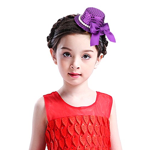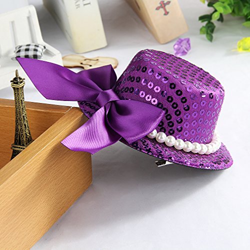 GEMVIE ヘアアクセサリー キッズ 髪飾り 子供 ヘアピン ミニハット ヘッドドレス ガールズ プリンセス 髪留め 写真撮影 発表会 パープル