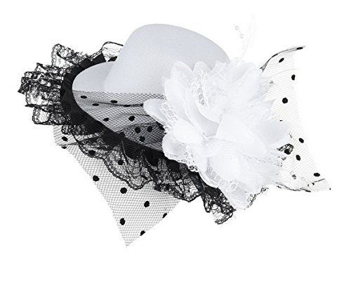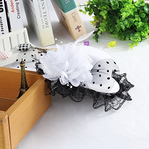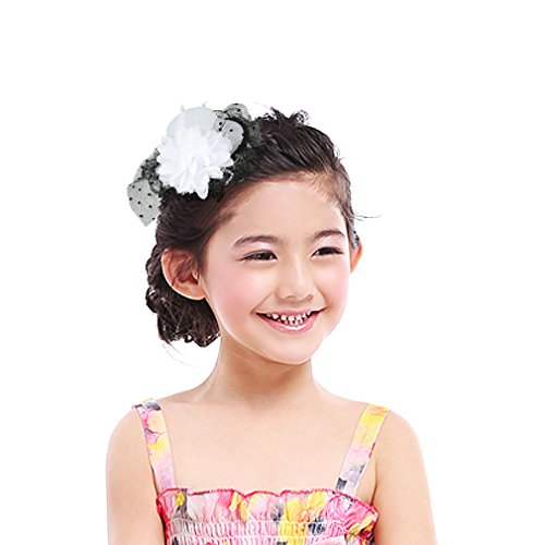 GEMVIE ヘアアクセサリー キッズ 髪飾り チュール お花飾り 子供 ヘアピン ミニハット ヘッドドレス ガールズ 髪留め 結婚式 発表会 ホワイト