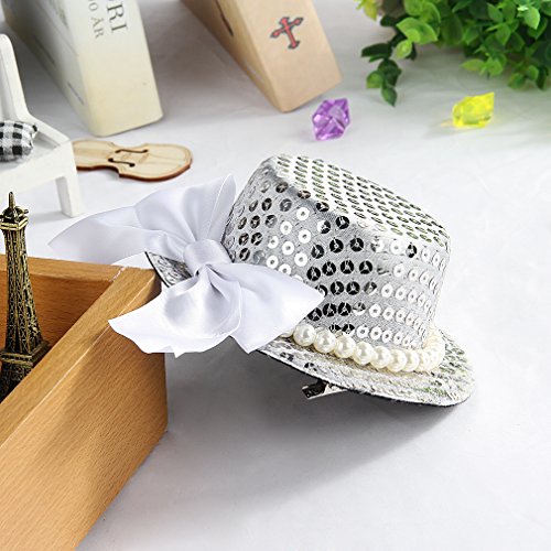 GEMVIE ヘアアクセサリー キッズ 髪飾り 子供 ヘアピン ミニハット ヘッドドレス ガールズ プリンセス 髪留め 写真撮影 発表会 シルバー