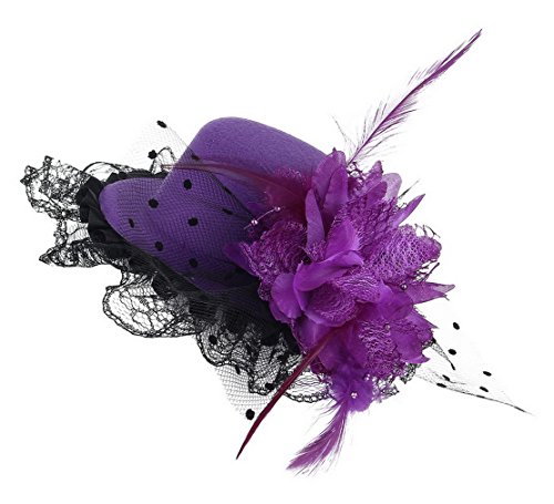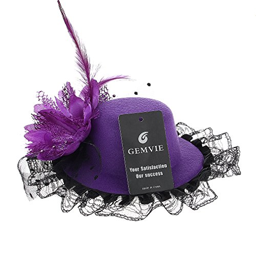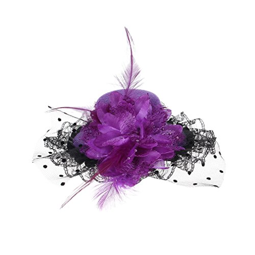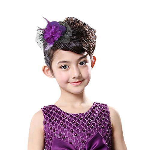 GEMVIE ヘアアクセサリー キッズ 髪飾り チュール お花飾り 子供 ヘアピン ミニハット ヘッドドレス ガールズ 髪留め 結婚式 発表会 パープル