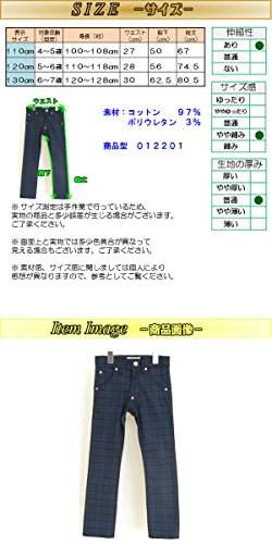 表示サイズ(110) 年齢(5歳) 身長(約100~110cm) ウエスト(27cm) 股下(50cm) 総丈(67cm) / 表示サイズ(120) 年齢(5~6才) 身長(約110~120cm) ウエスト(28cm) 股下(56cm) 総丈(74.5cm) / 表示サイズ(130) 年齢(6~7才) 身長(約120~130cm) ウエスト(30cm) 股下(62.5cm) 総丈(80.5cm) 素材: コットン97%, ポリウレタン3%