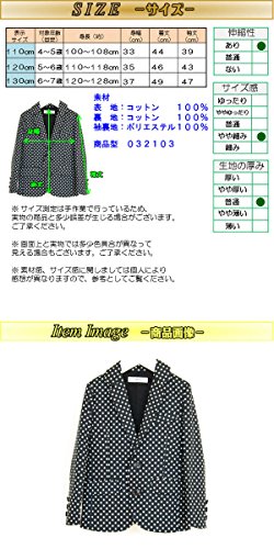 表地: コットン100%/ 裏地: コットン100% / 袖裏地: ポリエステル100% 表示サイズ(110) 年齢(5歳) 身長(約100~110cm) 身幅(33cm) 着丈(44cm) 袖丈(39cm) / 表示サイズ(120) 年齢(5~6才) 身長(約110~120cm) 身幅(35cm) 着丈(46cm) 袖丈(43cm) / 表示サイズ(130) 年齢(6~7才) 身長(約120~130cm) 身幅(37cm) 着丈(49cm) 袖丈(47cm)
