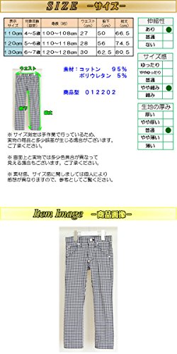 表示サイズ(110) 年齢(5歳) 身長(約100~110cm) ウエスト(27cm) 股下(50cm) 総丈(66.5cm) / 表示サイズ(120) 年齢(5~6才) 身長(約110~120cm) ウエスト(28cm) 股下(56cm) 総丈(74.5cm) / 表示サイズ(130) 年齢(6~7才) 身長(約120~130cm) ウエスト(30cm) 股下(62.5cm) 総丈(80.5cm) 素材: コットン95%, ポリウレタン5%