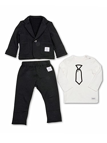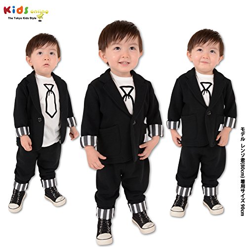 カットソーデザインのベビーのフォーマルセットは、パンツ裾とジャケットの袖をまくるとストライプになっているのでロールアップしてもカワイイデザイン。動きやすいので小さい子にも嫌がられない1着です。プレゼントなどにもオススメのセットです。