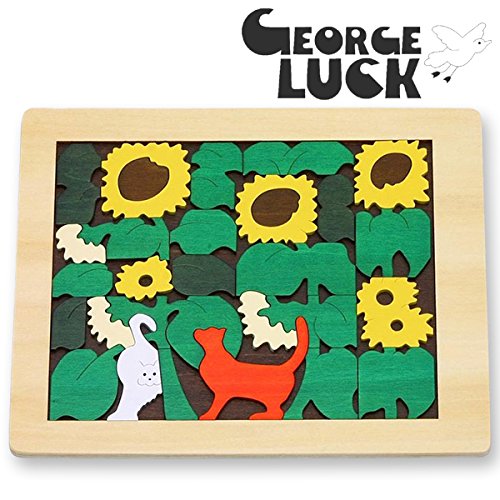 George Luck(ジョージ・ラック)木製パズル。13歳以上におすすめの少し難し目のトリックパズルです。 ひまわりとネコをモチーフにした、まるで絵画のようなパズルです。 トレーを縦にしてパーツを入れ替えると、背が伸びたひまわりの絵になります。 子どもだけでなく、大人の方でも楽しむことができますので、家族でコミュニケーションをとりながら、一緒に遊ぶのがオススメです。 お部屋に飾っておいても素敵です。 ジョージ・ラックの木製の温かみあふれるパズルは、インテリアとしても高級感があり、プレゼントや新築祝いにも人気です。
