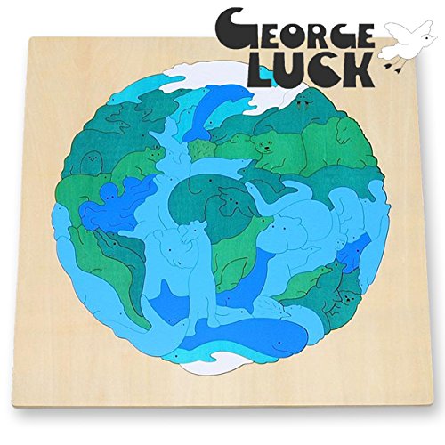 George Luck(ジョージ・ラック)木製パズル。10歳以上におすすめのユニークな地図パズルです。 各ピースの形は、動物の形になっていて、上手に組み合わせるとまるで世界地図のようにフレームに収まる少し難しめのパズルです。 子どもだけでなく、大人の方でも楽しむことができますので、家族でコミュニケーションをとりながら、一緒に遊ぶのがオススメです。 お部屋に飾っておいても可愛らしいです。 ジョージ・ラックの木製の温かみあふれるパズルは、インテリアとしても高級感があり、プレゼントにも人気です。