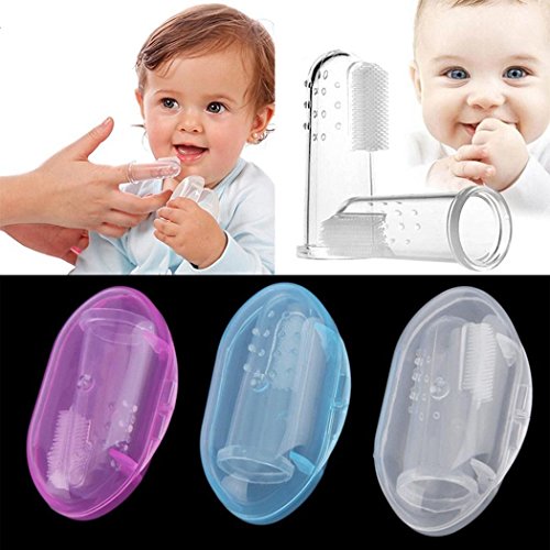 柔らかいシリコーンの指の歯ブラシは、子供のためのボックスでゴムのマッサージブラシの歯を赤ちゃん幼児