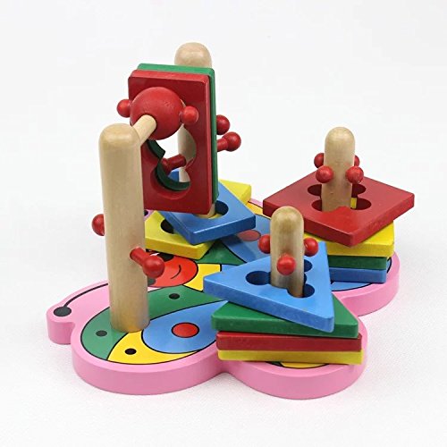 Goodgoods 木製 知育玩具 ちょうちょう 幾何認識 カラフル 積み木 子どもおもちゃ 教育 013-lzgy-d-123(20*18*14.5cm 約780g)