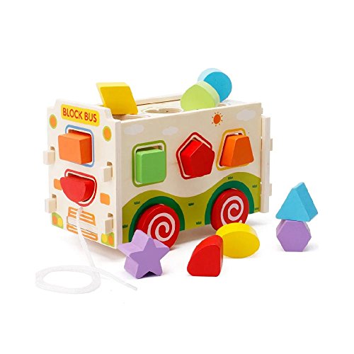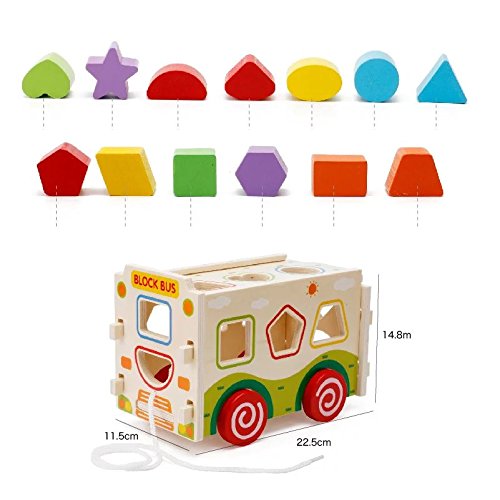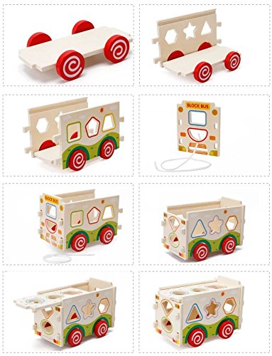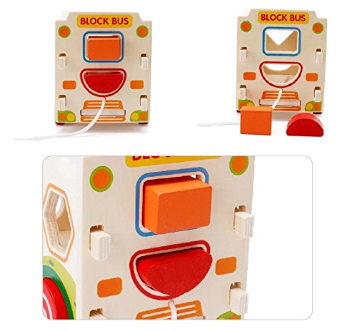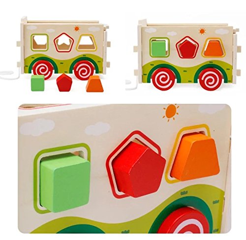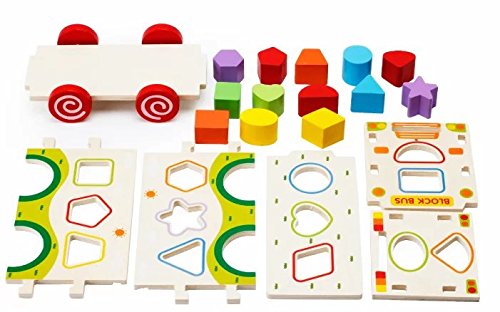 Goodgoods 知育玩具 かたちはめボード 木のおもちゃ バス 教育 カー 子ども 木製 積み木 ゲーム くるま 013-lzgy-d133(11.5*22.5*14.8cm 約1000g)