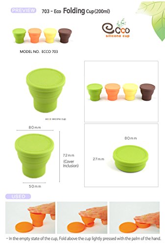 [Eco Silicone CUP] Folding magic cup 200ml 折りたたみ シリコン マジックカップ 全シリコン/人体に無害/高温でも環境ホルモンの排出無/電子レンジ、食器洗浄機、オーブン使用可能/滑り止め / シリコンマグカップ / 離乳食カップ / ミニタンブラー (Orange)