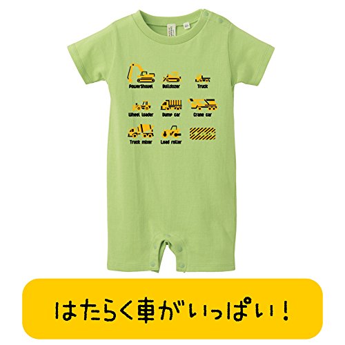 キッズベビーロンパース はたらく車 70 ライムグリーン