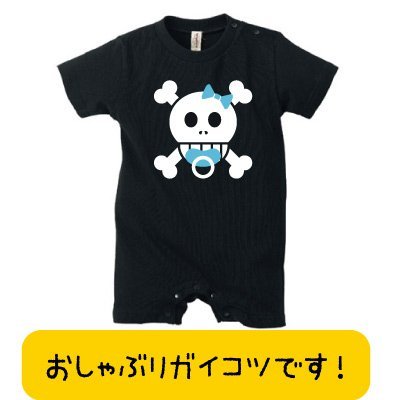 かわいいベビー・キッズロンパース おしゃぶりをした、ガイコツちゃん